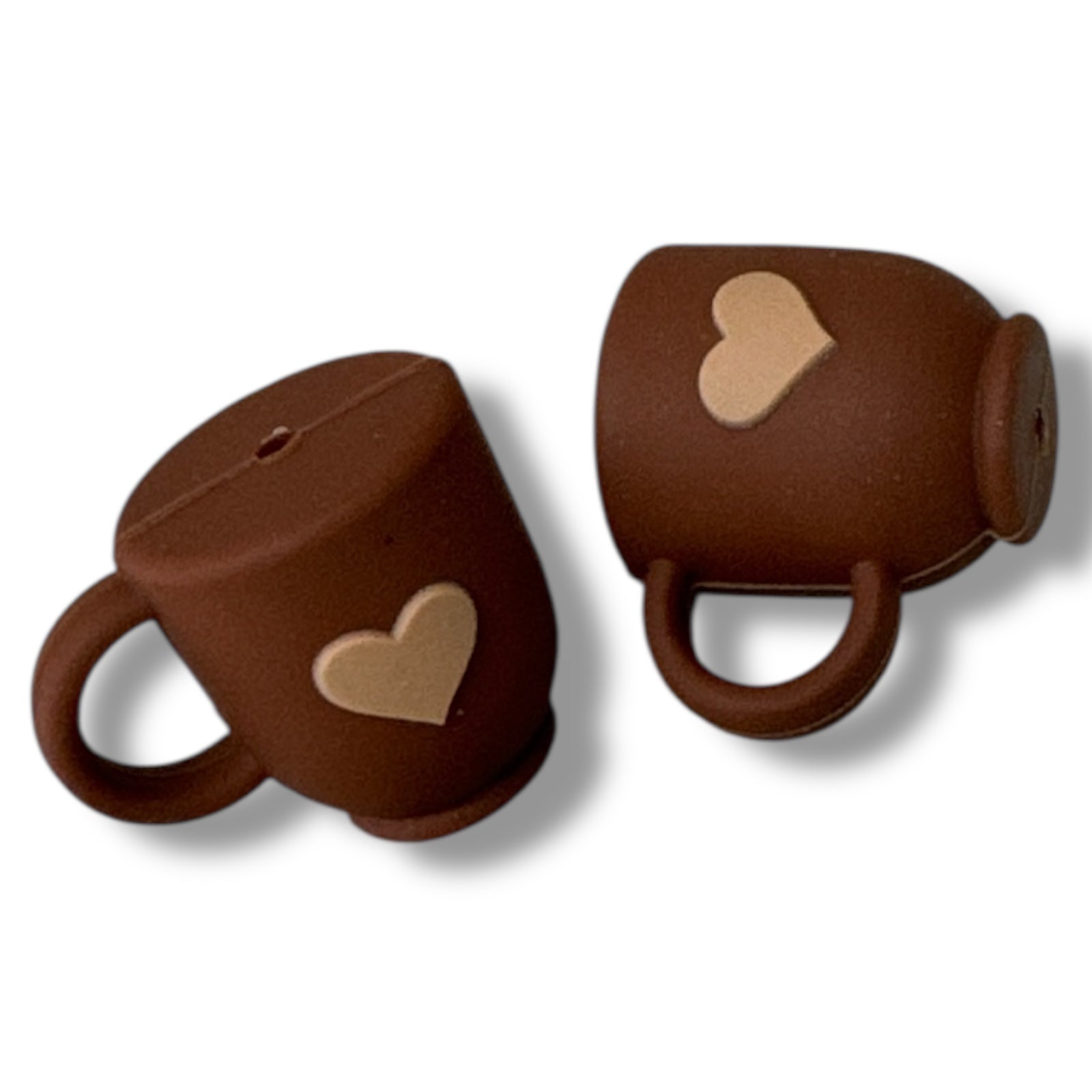 X151- "3D Brown Heart Coffee Mug" Silicone Focal Bead (1 Count)